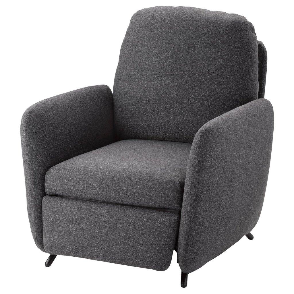 This comfortable recliner features Gunnared dark grey upholstery that blends seamlessly with modern interiors. The smooth reclining mechanism allows adjustable positioning while the padded arms enhance relaxation. Perfect for media rooms or lounges, this chair offers personalized comfort. The durable fabric resists pilling and maintains its rich charcoal appearance. A practical seating solution that combines functional flexibility with understated style through its versatile monochromatic design.